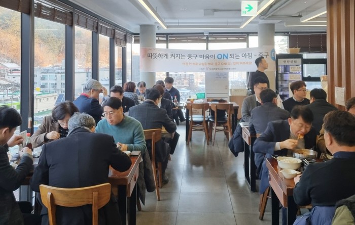 ‘중구 On(溫) 나눔’사업은 중구를 중심으로 주민, 기업, 기관, 자원봉사자가 함께 아침을 매개로 나눔을 일상화하고, 지역에 따뜻한 온기를 확산하는 중구형 지역연대 사회공헌 사업으로 지난 1월에 이어 두 번째 진행했다.