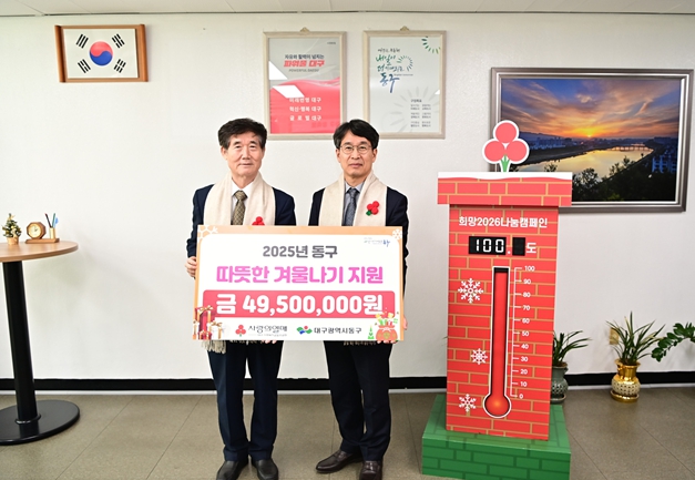 윤석준 동구청장은 “대구사회복지공동모금회에서 보내주신 따뜻한 정성에 감사드린다”며 “동구의 취약계층이 따뜻한 겨울을 보낼 수 있도록 소중한 성금을 잘 전달하겠다”고 말했다.