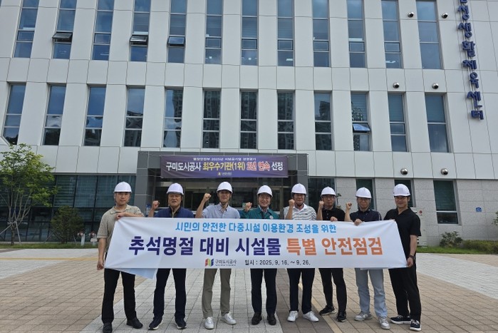 [파이낸셜경제=김지훈 기자] 구미도시공사는 다가오는 추석 연휴를 앞두고 시민들이 안전하고 쾌적하게 공공시설을 이용할 수 있도록 9월 16일부터 9월 26일까지 공영주차장, 체육시설, 휴양림, 캠핑장 등 주요 다중이용시설을 대상으로 특별 안전점검을 실시한다.