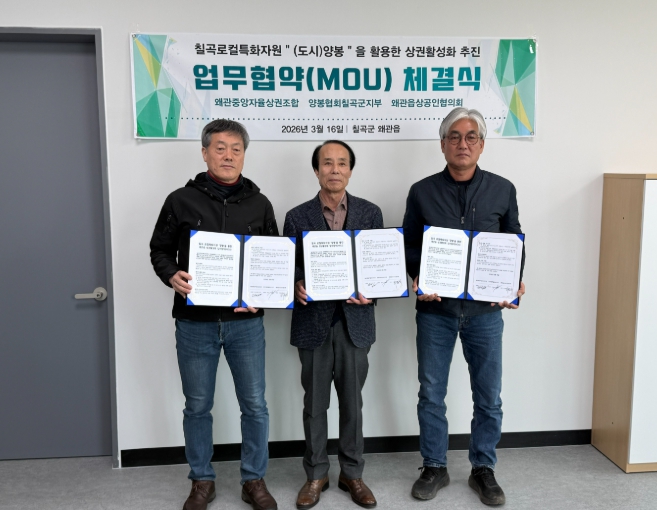 왜관중앙자율상권조합, 양봉협회칠곡군지부, 왜관읍상공인협의회는 지난 16일 '칠곡 로컬특화자원 (도시)양봉’을 통한 왜관읍 상권활성화 업무협약(MOU)을 체결했다고 밝혔다.