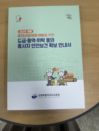 [파이낸셜경제=조성환 기자] 강원특별자치도교육청은 교육 현장 내 중대산업재해 예방과 안전보건 관리 수준 제고를 위해 ‘도급·용역·위탁 등의 종사자 안전보건 확보 안내서’ 개정판을 제작하여 도내 698개 교육행정기관 및 공립학교에 배포한다고 17일 밝혔다.