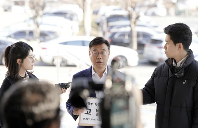 | ▲ 신상진 성남시장이 19일 오전 공수처에 고발장을 접수하고 있다 |
