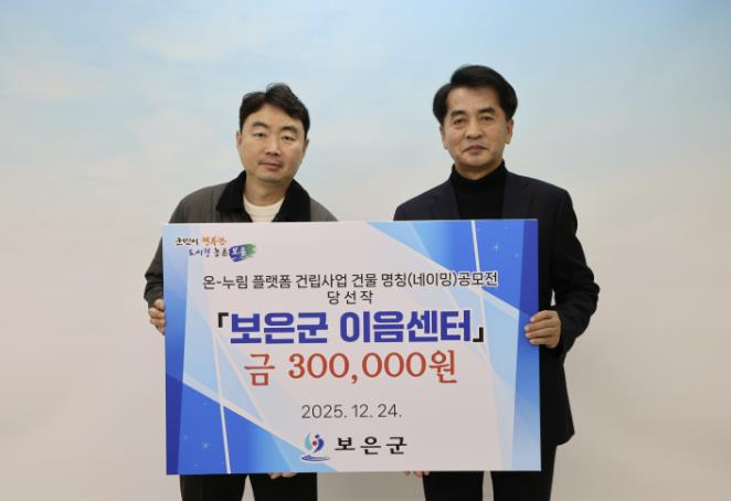[파이낸셜경제=김영란 기자] 충북 보은군은 생애주기별 복지서비스 제공을 위한 ‘온-누림 플랫폼(가칭)’의 공식 명칭으로 ‘보은군 이음센터(응모자 박준표)’를 최종 선정하고 24일 시상식을 개최했다.