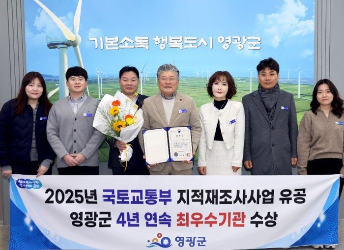 [파이낸셜경제=김예빈 기자] 영광군은 국토교통부가 주관한 '2025년 지적재조사사업 업무 평가'에서 4년 연속 최우수기관으로 선정되어 국토교통부장관 기관 표창을 수상했다고 밝혔다.