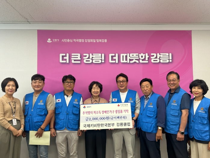 이채희 복지민원국장은 “명절을 앞두고 지역의 어려운 이웃을 위해 따뜻한 나눔을 실천해주신 국제키비탄한국본부 강릉클럽에 감사드린다.”며, “시에서도 취약계층의 생활 안정을 위해 지속적으로 노력해나가겠다.”고 말했다.