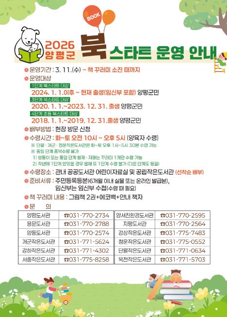 [파이낸셜경제=김기보 기자] 양평군은 오는 11일부터 ‘2026년 북스타트 사업’을 본격 운영한다고 밝혔다.