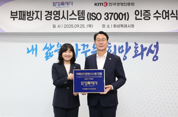 [파이낸셜경제=김기보 기자] 화성특례시가 국제표준화기구(ISO)에서 제정한 부패방지경영시스템 (ISO37001) 인증을 획득했다.