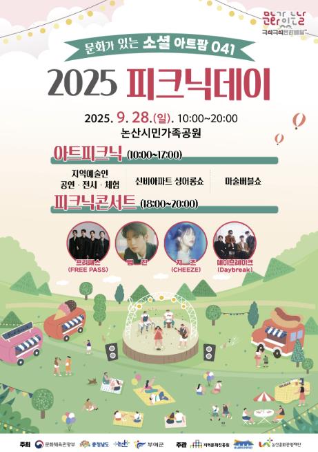 이번 행사는 '소셜 아트팜 – 문화 예술 피크닉'을 주제로, 논산시 지역민들과 방문객들이 깊어가는 가을 속에서 문화 예술과 함께 여유로운 피크닉 분위기를 즐길 수 있는 특별한 기회를 선사하며 다양한 문화 공연뿐만 아니라 지역 예술인 및 예술단체가 참여하는 체험 프로그램으로 구성되어 있다.