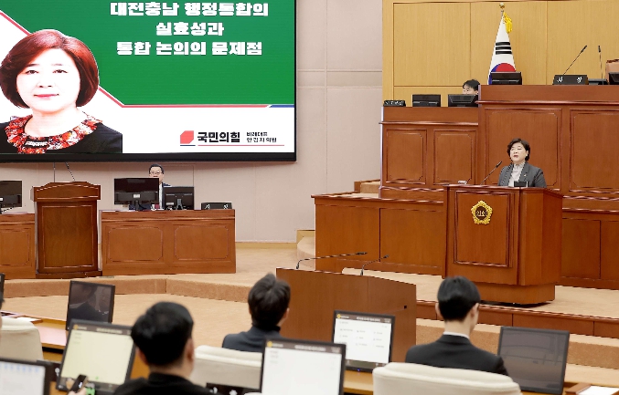 [파이낸셜경제=김영란 기자] 대전시의회 행정자치위원회 안경자 의원(국민의힘, 비례대표)이 2일 열린 제292회 임시회 제3차 본회의에서 5분 자유발언을 통해 대전·충남 행정통합의 실효성과 논의 과정의 문제점을 지적했다.