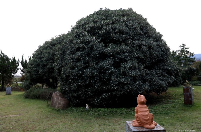 천개의향나무숲은 향나무 천여 그루를 중심으로 금목서, 은목서 등 수목과 야생화 200여 종이 식재돼 있다. 면적은 2.7㏊로 구례역사와 숨결을 간직한 살아있는 생태숲으로 사랑받고 있다. 은목서 열 그루가 높이 7m, 둘레 50m, 동서 16m, 남북 14m에 달하며 하트(♡)모양으로 작은 숲이 형성돼 있다. 잘 익은 포도주 같은 금목서 향기도 보탠다.