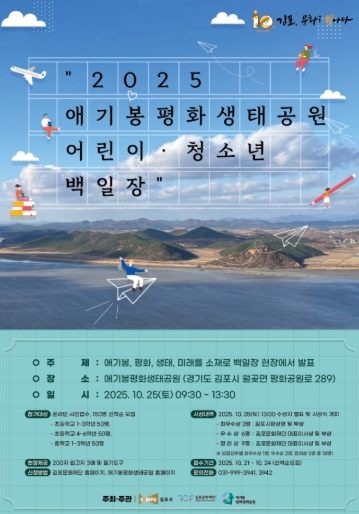 [파이낸셜경제=김기보 기자] 매월 특별한 이벤트가 열리는 애기봉평화생태공원에서 오는 25일 ‘2025 어린이‧청소년 백일장’을 개최한다. 이번 행사는 어린이와 청소년들이 자연 공간에서 창작하며 김포의 미래를 상상할 수 있게 마련된 시민 참여형 문화행사로, 걷기 행사와 역사 강의, 공연 및 전시 등 다양한 프로그램이 함께 진행될 예정이다.
