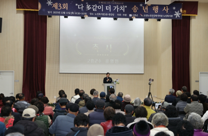 [파이낸셜경제=김예빈 기자] 고흥군은 지난 11일 도양노인건강복지타운 노인복지관 대강당에서 지역 어르신 300여 명이 참석한 가운데 ‘2025년 연말 송년행사’를 성황리에 개최했다고 밝혔다.