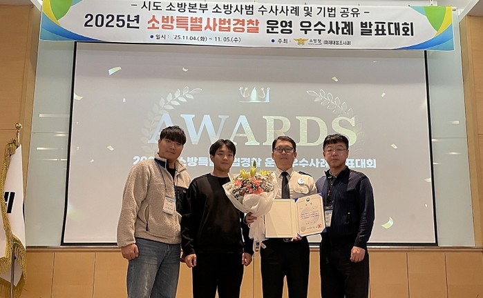 조원광 대전소방본부 대응조사과장은 “이번 수상은 대전소방특별사법경찰의 정확한 증거 분석과 체계적인 수사 전문성이 전국적으로 인정받은 결과”라며, “앞으로도 다양한 수사사례 연구와 전문 역량 강화로 법질서 확립과 시민 안전 확보에 최선을 다하겠다”고 말했다.