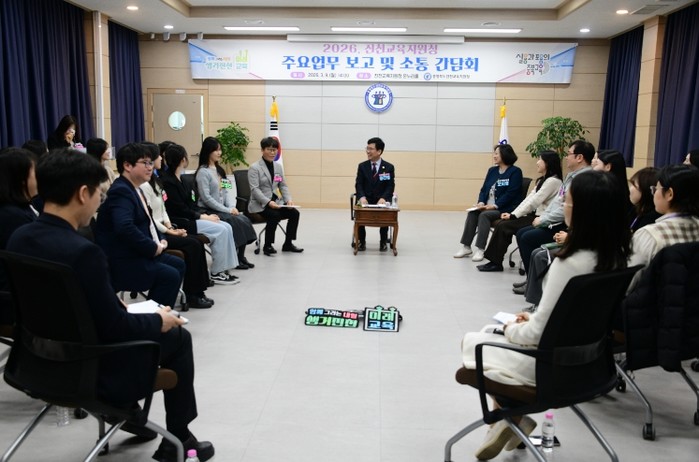 [파이낸셜경제=김영란 기자] 충청북도진천교육지원청은 9일, 진천교육지원청 온누리홀에서 윤건영 충청북도교육감과 진천교육지원청 7∼9급 일반직 공무원 20여 명이 참석한 가운데 2026년 주요업무 보고 및 MZ세대 공감 소통 간담회를 개최했다고 밝혔다.