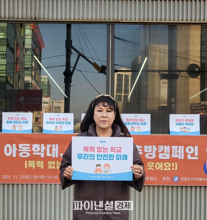[파이낸셜경제=김예빈 기자] 전국아동여성안전네트워크가 창립된 지 10주년 되는 해이기도 하고 11월 19일 “아동학대 예방의 날”, 11월 25일 UN이 정한 “세계여성폭력 추방의 날”을 맞아 중간지점인 11월 22일 토요일 오전 영등포역 주변과 영등포 타임스퀘어 주변 등에서 전국아동여성안전네트워크(상임대표 이섬숙)주최, 영등포구 자원봉사센터 후원으로 “아동학대, 여성폭력 추방캠페인”이 있었다.