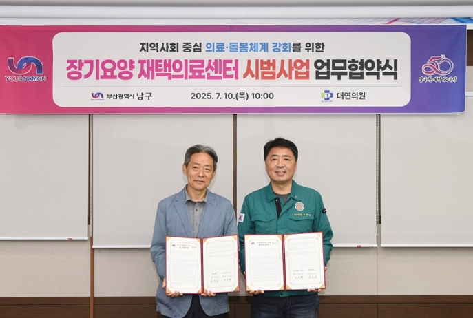 [파이낸셜경제=박영진 기자] 부산광역시 남구청은 지난 10일 보건복지부 주관 ‘2025년 장기 요양 재택의료 센터 시범 사업’에 선정되어, 관내 대연의원과 협약을 체결하고 재택 의료서비스 제공에 나섰다.