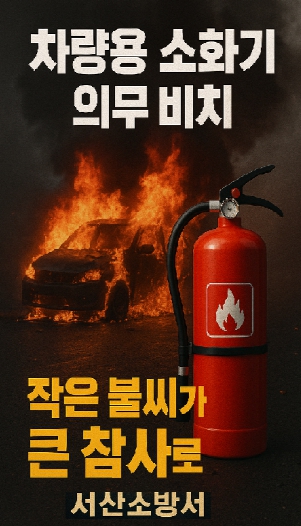 [파이낸셜경제=김영란 기자] 서산소방서는 최근 빈번히 발생하는 차량 화재 사고와 관련해 차량용 소화기 비치 의무화를 적극 당부했다.