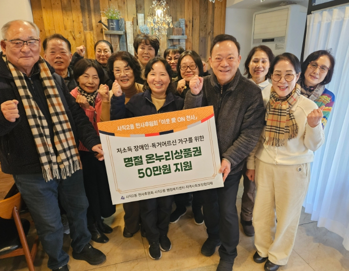 설 명절을 맞아 천사후원회 이사들은 관내 독거 장애인과 어르신 10세대를 방문해 세대당 5만 원 상당의 온누리상품권을 전달했으며, 생활 전반에 대한 복지상담도 병행하며 어려운 이웃들의 명절의 외로움을 덜어주는 시간을 가졌다.