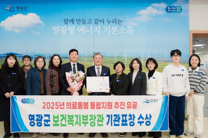 [파이낸셜경제=김예빈 기자] 영광군은 12월 5일 보건복지부가 주관한 “2025년 의료·요양·돌봄 통합지원 성과대회”에서 유공 기관으로 선정되어 보건복지부 장관 표창을 수상했다.