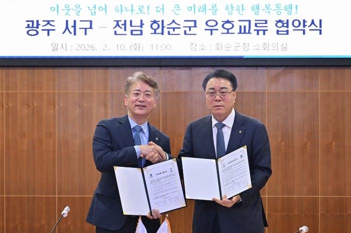 [파이낸셜경제=김영란 기자] 광주광역시 서구는 10일 전라남도 화순군청에서 화순군과 우호교류 협약을 체결하고 생활권을 공유하는 이웃 지자체 간 협력과 공동발전을 위한 상생 체계를 구축하기로 했다.