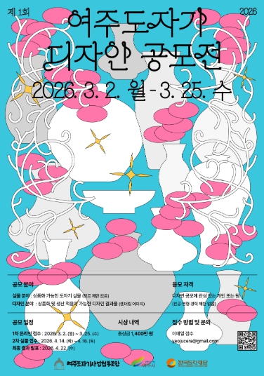 또한, 공모전 시상식은 5월 1일 열릴 예정이며 총 시상금 규모는 1,400만원이다. 수상자에게는 여주 도자 제조 업체와의 연계, 시제품 제작, 후속 전시 등 다양한 기회도 제공할 예정이다.