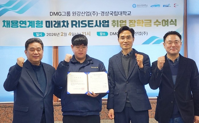 [파이낸셜경제=김영란 기자] 경상국립대학교는 2월 4일 오전 11시 함안군에 소재한 원강산업(주) 회의실에서 ‘채용연계형 미래차 RISE사업 취업 장학금 수여식’을 개최했다.