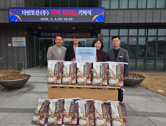 [파이낸셜경제=김기보 기자] 다민토건(주)(대표 정의민)이 설 명절을 맞아 4일 문백면 행정복지센터를 찾아 소외계층을 위한 백미 500kg을 기탁했다.