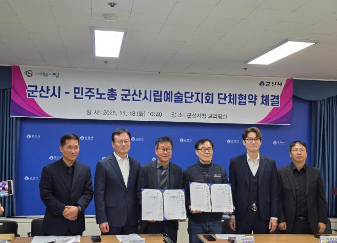 [파이낸셜경제=김예빈 기자] 군산시와 민주노총 공공운수사회서비스노조 군산시립예술단지회가 시립예술단의 운영 안정화와 지속적인 발전을 위한 단체협약을 18일 체결했다고 밝혔다.
