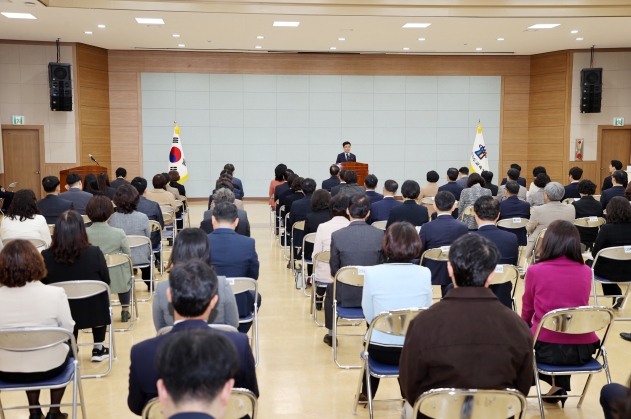 [파이낸셜경제=김기보 기자] 윤건영 충청북도교육감이 3일 오전, 화합관에서 11월 월례조회를 개최했다.