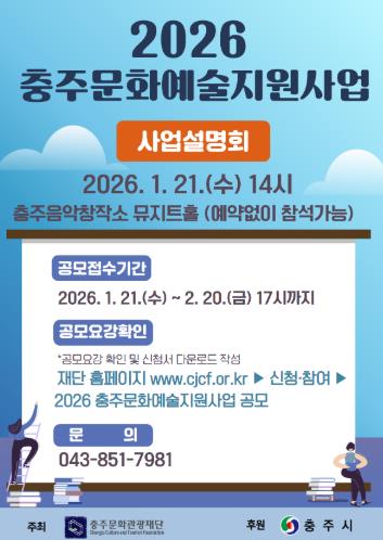 | ▲ 충주문화관광재단, 2026년도 충주문화예술지원사업 공모 추진 |