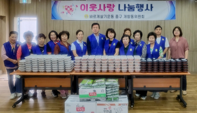 김선금 동장은 “도움이 필요한 이웃에게 온정을 나누는 데 앞장서는 바르게살기운동 중구 개항동 위원들께 감사하다”라며 “정성과 마음이 전해져 이웃들에게 위로와 힘이 되길 바란다”라고 전했다.