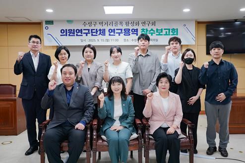 [파이낸셜경제=김지훈 기자] 수성구의회 의원연구단체인 ‘수성구 먹거리골목 활성화 연구회’는 15일 의회 2층 회의실에서 ‘수성구 먹거리골목 활성화 모델 마련’ 연구용역 착수보고회를 개최했다.