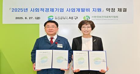 [파이낸셜경제=박영진 기자] 부산 서구는 ‘2025년 사회적경제기업 사업개발비 지원 사업’ 공모에 선정된 관내 예비사회적기업 ㈜한국보건의료복지협회와 사업개발비 지원 약정을 체결했다.