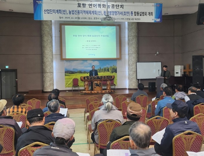[파이낸셜경제=김지훈 기자] 포항시는 10일 YPC수련원 대강당에서 ‘포항 연어 양식특화농공단지 조성사업’ 주민 합동설명회를 열고, 본격적인 사업 추진을 알렸다.