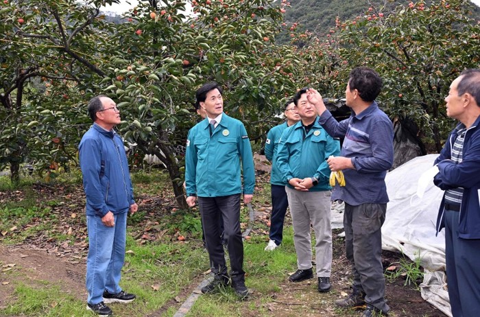 | ▲ 안병구 밀양시장, 상동면 떫은감 탄저병 피해 현장 방문 |