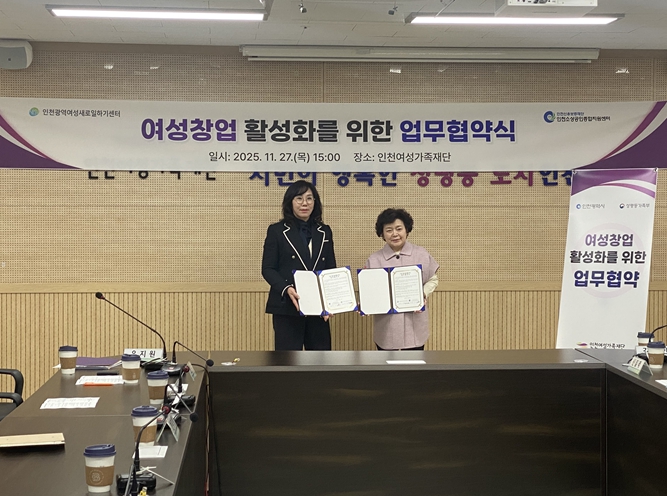 유지원 인천신용보증재단 인천소상공인종합지원센터장은 “센터는 소상공인의 ‘손톱 밑 가시’를 해결하는 든든한 파트너로서, 경영 과정에서 겪는 다양한 어려움을 덜어드리기 위해 교육·컨설팅·경영환경개선·폐업 지원 등 소상공인 생애주기별 맞춤형 지원 사업을 폭넓게 추진하고 있다”며 “이번 협약을 계기로 인천지역 여성 창업 활성화를 위해 더욱 긴밀히 협력하고, 지원을 한층 강화해 나가겠다”고 말했다.