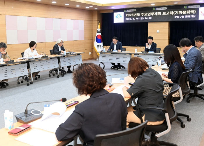 [파이낸셜경제=김기보 기자] 부평구는 지난 15일부터 18일까지 8회에 걸쳐 차준택 구청장 주재로 6개의 국과 보건소, 담당관·관 및 시설관리공단, 문화재단의 간부공무원이 참석한 가운데 ‘2026년도 주요업무계획 보고회’를 개최했다고 밝혔다.