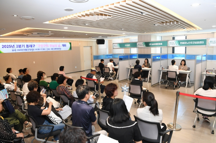 [파이낸셜경제=박영진 기자] 부산 동래구는 지난 6월 27일 오후 2시부터 5시까지, 동래구청 9층 다목적 회의실에서 ‘2025년 2분기 동래구 구인・구직 만남의 날’을 성황리에 개최했다고 밝혔다.