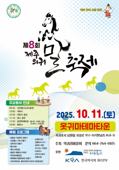 [파이낸셜경제=김영란 기자] 서귀포시는 ‘헌마공신 김만일’을 기리고, 제주 전통마와 지역 목축문화를 널리 알리기 위한 제8회 의귀말 축제가 오는 11일 옷귀마테마타운 일원에서 개최된다고 밝혔다.