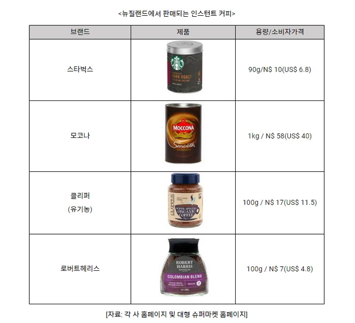 <자료: 유로모니터 뉴질랜드 커피시장 보고서, 현지 기업 홈페이지, KOTRA 오클랜드무역관자료 ⓒ KOTRA & KOTRA 해외시장뉴스>