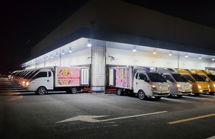| ▲ 아산시먹거리재단 학교급식지원센터 새학기 식재료 배송차량 출발 사진 |