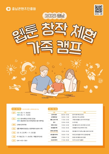 캠프는 서산 11월 8일, 천안 11월 15일에 각각 진행되며, 웹툰 창작에 관심 있는 충남도 거주 초등학생과 보호자가 한 팀을 이루어 참여할 수 있다.