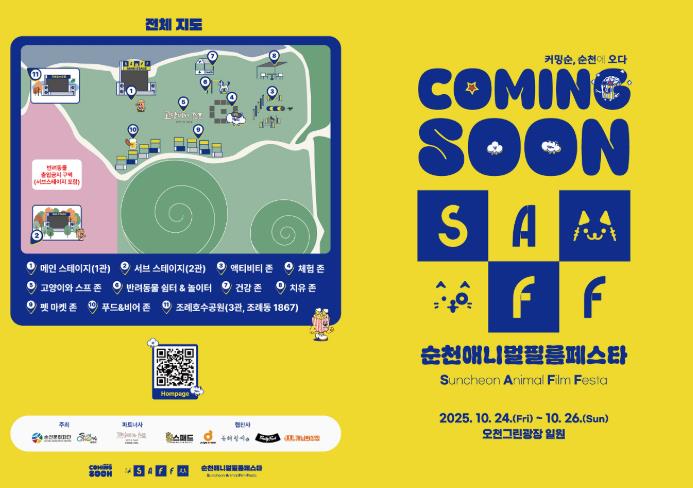 [파이낸셜경제=김예빈 기자] 순천시와 순천문화재단에서 오는 24일부터 26일까지 3일간, 반려동물과 함께 즐길 수 있는 특별한 야외 영화축제 ‘2025 순천애니멀필름페스타(SAFF)’를 공동으로 개최한다.