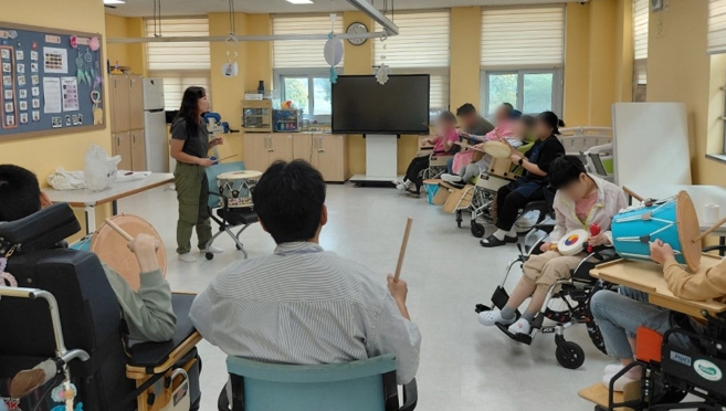 이번 프로그램은 매주 수요일 청주시 장애인 주간보호센터에서 총 8회기로 진행되며, 전문 강사의 지도 아래 다양한 타악기를 활용해 리듬을 익히고 장애인들도 함께 연주하며 즐길 수 있도록 프로그램을 구성했다.