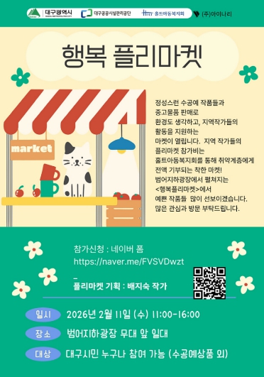 또한 범어지하도상가는 2월 11일 ‘설맞이 시민 참여형 행복 플리마켓’을 열고 지역 소상공인·예술인과 함께하는 상생의 장을 마련했다.