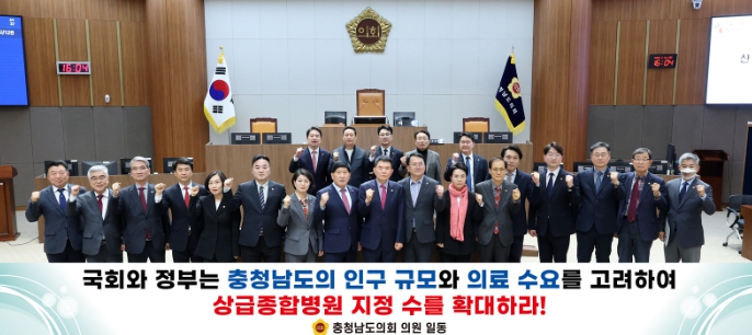 이에 충남도의회는 정부에 ▲충청남도의 상급종합병원 지정수 확대 ▲수도권 중심의 평가·지정 체계 개선 ▲중증·응급·필수의료 대응을 위한 지역 완결형 의료 네트워크 구축 ▲지역 의료인력 양성을 위한 제도적·재정적 지원 마련 등을 촉구했다.