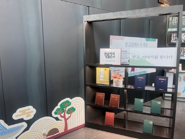 이곳에서는 한글학회가 세종시시립도서관에 기증한 조선시대 실록 등 주요 고전 한글 번역본 40권과 세종대왕 및 한글 관련 주제 도서 15권 등을 전시한다.
