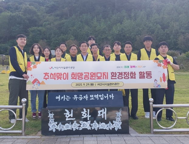 [파이낸셜경제=김영란 기자] 서산시시설관리공단은 민족 최대 명절 추석을 앞두고 성묘객들에게 깨끗하고 쾌적한 추모 환경을 제공하기 위해 9월 29일 서산시 희망공원묘지에서 환경정화 활동을 실시했다.