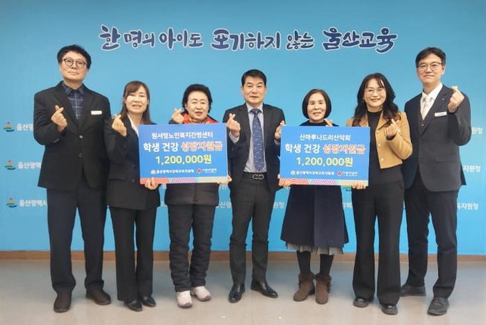 [파이낸셜경제=김예빈 기자] 원서영노인복지간병센터와 산마루나드리산악회가 5일 울산강북교육지원청을 방문해 취약‧위기 학생 지원을 위한 후원금 240만 원을 기탁했다.
