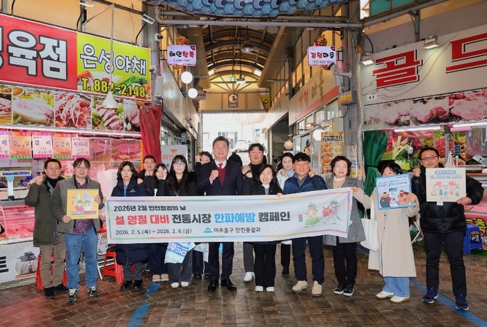 [파이낸셜경제=김기보 기자] 인천 미추홀구는 설 명절을 앞두고 5일부터 6일까지 총 이틀간 관내 전통시장을 방문해 ‘동절기 한파 예방 캠페인 및 화재 대비 집중 안전 점검’을 실시한다.